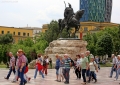 Tourists walking in the Skanderbeg square. During the first quarter of 2023, the number of foreign citizens who entered the Albanian territory is 1,684,820. This number has increased by 57%, compared to the same period of 2022.