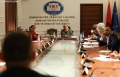 Prosecutors of SPAK, Klodjan Braho, Adnan Xholi and Arben Kraja, Legal Adviser to the Head of SPAK and representative of OPDAT, Fabian Xhilla and Head of SPAK, Altin Dumani speaking during a session of the parliamentary committee for Legal Affairs, Public Administration and Human Rights speaking during a session of the parliamentary committee for Legal Affairs, Public Administration and Human Rights where they reported on the activity of SPAK for 2022.