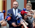 GAZMENT BARDHI SPEAKS TO THE JOURNALISTS - The chairman of the DP parliamentary group, Gazment Bardhi speaking to the journalists, after a meeting with the members who support him within the DP parliamentary group. Bardhi said that he is open to talks with former Prime Minister Berisha for a party union.
