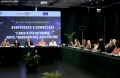 Head of the Office of the Council of Europe in Tirana, Olsi Dekovi, Deputy Ermonela Felaj, Minister of State for Services and Standards, Milva Ekonomi, First Secretary of the Embassy of the United Kingdom in Tirana, Sam Goldbart and the Commissioner for the Right to Information and Protection of Personal Data, Besnik Dervishi, during the conference The Right to Information - Openness, Transparency, Digitization, organized as part of the 15th anniversary of the Commissioner's office. The conference focused on evaluating the level of implementation of the law On the right to information.