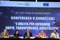 CONFERENCE FOR THE 15TH ANNIVERSARY OF THE OFFICE OF THE COMMISSIONER - Head of the Office of the Council of Europe in Tirana, Olsi Dekovi, Deputy Ermonela Felaj, Minister of State for Services and Standards, Milva Ekonomi, First Secretary of the Embassy of the United Kingdom in Tirana, Sam Goldbart and the Commissioner for the Right to Information and Protection of Personal Data, Besnik Dervishi, during the conference The Right to Information - Openness, Transparency, Digitization, organized as part of the 15th anniversary of the Commissioner's office. The conference focused on evaluating the level of implementation of the law On the right to information.