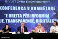 Deputy Ermonela Felaj, Minister of State for Services and Standards, Milva Ekonomi, First Secretary of the Embassy of the United Kingdom in Tirana, Sam Goldbart and the Commissioner for the Right to Information and Protection of Personal Data, Besnik Dervishi, during the conference The Right to Information - Openness, Transparency, Digitization, organized as part of the 15th anniversary of the Commissioner's office. The conference focused on evaluating the level of implementation of the law On the right to information.