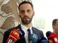 The Deputy Minister of the Interior, Besfort Lamallari speaking to journalists after a presentation on the Awareness strategy and Communication, as well as the 2023-2027 National Plan for Small and Light Weapons (SALW). In the framework of the strategy, the first awareness campaign on this topic was also presented in this activity. The strategy emphasizes the importance of constructive involvement and dialogue with the public.
