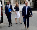 DP LEADERSHIP MEETING - The chairman of the DP parliamentary group, Gazment Bardhi and MPs Jorida Tabaku and Arbi Agalliu entering the premises of the new headquarters of the DP, to hold a meeting of the leadership of the Democratic Party, where only the supporters of Bardhi's group took part.