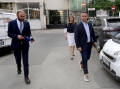 The chairman of the DP parliamentary group, Gazment Bardhi and MPs Jorida Tabaku and Arbi Agalliu entering the premises of the new headquarters of the DP, to hold a meeting of the leadership of the Democratic Party, where only the supporters of Bardhi's group took part.