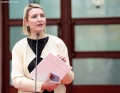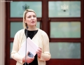 Minister of Culture, Elva Margariti speaking in front of the Prime Minister's office, after a government meeting, regarding the approved decisions