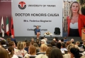 Federica Mogherini during a ceremony where she was decorated with the title Doctor Honoris Causa from the Tirana Universitety, in recognition of everything she has done for Albania. During the ceremony, Mogherini was described as a friend of Albania, considering her as one of the few European figures who have seen her work for Albania as more than that.