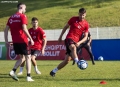 Players of the Albanian national football team during a training session in the fields of the Football House before the two official matches of the qualifiers for Euro 2024 against Moldova and the Faroe Islands.