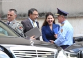 Minister of the Interior, Bledar Cuci, Director of SHISH, Vlora Hyseni leaving a meeting of the security council, held in the premises of the Presidency. During the meeting, an analysis was made of the state of cyber security and the measures taken by institutions to strengthen cyber protection in critical and important information infrastructures.
