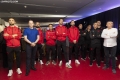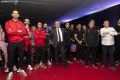The coach of the Albanian national football team, Sylvinho, the General Secretary of the AFF Ilir Shulku and the players of the Albanian national football team, Elseid Hysaj, Amir Abarshi, Sokol Cikalleshi, Armando Sadiku and Ertrit Berisha during a promotion ceremony for Ansi Agolli's documentary Historia Ime at the FSF premises, produced by journalists Elvis Rexha and Glenti Nallbani. The documentary shows his career and his personal story.