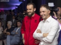 The player of the Albanian national football team, Sokol Cikalleshi and former player Ansi Agolli during a promotion ceremony for Ansi Agolli's documentary Historia Ime at the FSF premises, produced by journalists Elvis Rexha and Glenti Nallbani. The documentary shows his career and his personal story.