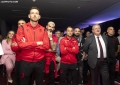 The president of the AFF, Armand Duka and the players of the Albanian national football team, Elseid Hysaj, Armando sadiku and Odise Roshi during a promotion ceremony of Agolli's documentary Historia Ime in the premises of the AFL, produced by journalists Elvis Rexha and Glenti Nallbani. The documentary shows his career and his personal story.