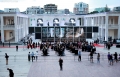People gathering at the Italia square before a fashion show held as part of the MUZA competition, a project undertaken by the Union of Albanian Municipalities in the Region in the framework of Tirana as the European Youth Capital 2022. The purpose of this project is to activate passionate young people and professional, in the revival of ethnographic elements in the field of fashion-design.