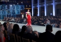 Presenter Rudina Magjistari before a fashion show held as part of the MUZA competition, a project undertaken by the Union of Albanian Municipalities in the Region in the framework of Tirana as the European Youth Capital 2022. The purpose of this project is to activate passionate young people and professional, in the revival of ethnographic elements in the field of fashion-design.