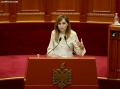 The Minister of State for relations with the parliament, Elisa Spiropali speaking during a parliamentary session, where the MP discussed the DAP report for 2022 as well as the situation created in the north of Kosovo. The opposition MPs have requested to make public the draft sent to the French president and the German chancellor for the association of municipalities with Serbian majority in the north of Kosovo.