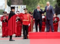 The Prime Minister, Edi Rama and his Hungarian counterpart, Viktor Orban, walking in front of the ministers of the Albanian cabinet, during an official reception ceremony near the Prime Minister's Office.