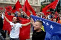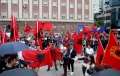 People singing and holding flags of Albania, Kosovo and the KLA in front of the prime minister's office in Tirana, in support of Kosovo for the situation created in the north. Starting from Prime Minister Edi Rama's criticism of the Kosovar Prime Minister, Kurti, the protesters have asked the Albanian government not to be impartial in its approach and to support Kosovo.
