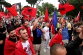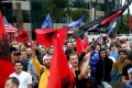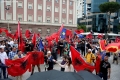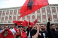 PROTEST IN SUPPORT OF KOSOVO - People singing and holding flags of Albania, Kosovo and the KLA in front of the prime minister's office in Tirana, in support of Kosovo for the situation created in the north. Starting from Prime Minister Edi Rama's criticism of the Kosovar Prime Minister, Kurti, the protesters have asked the Albanian government not to be impartial in its approach and to support Kosovo.
