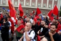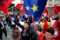 Singers Big Basta and Vesa Luma during a protest in front of the prime minister in Tirana, in support of Kosovo for the situation created in the north. Starting from Prime Minister Edi Rama's criticism of the Kosovar Prime Minister, Kurti, the protesters have asked the Albanian government not to be impartial in its approach and to support Kosovo.
