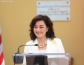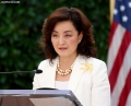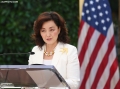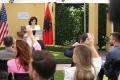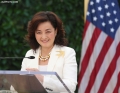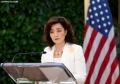 Ambassador of the United States in Tirana, Yuri Kim speking during a press conference in the premises of the American embassy in Tirana. This was Yuri Kim's last press conference as ambassador to Albania, while she will continue to work within the American administration, taking the position of principal deputy assistant secretary for European affairs at the US State Department.