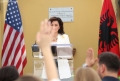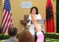 Ambassador of the United States in Tirana, Yuri Kim entering press conference in the premises of the American embassy in Tirana. This was Yuri Kim's last press conference as ambassador to Albania, while she will continue to work within the American administration, taking the position of principal deputy assistant secretary for European affairs at the US State Department.