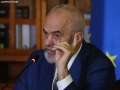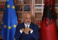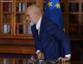 Prime Minister Edi Rama exiting a press conference, where he commented on the situation in the north of Kosovo. Rama stated that he sent a letter to German Chancellor Scholz and French President Macron regarding the issue and stated that the 3 Kosovar police officers must be released as soon as possible.