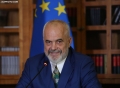 Prime Minister Edi Rama speaking during a press conference, where he commented on the situation in the north of Kosovo. Rama stated that he sent a letter to German Chancellor Scholz and French President Macron regarding the issue and stated that the 3 Kosovar police officers must be released as soon as possible.