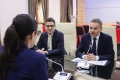 Minister of Finance and Economy, Delina Ibrahimaj and member of the board of directors of the European Bank for Reconstruction and Development, Caspar Veldkamp during an offical meeting with the Board of Directors of the European Bank for Reconstruction and Development (EBRD), who are conducting a 3-day visit to Albania. During the meeting, the participants talked about the cooperation between the Bank and the Albanian state, structural reforms in Albania and coping with crises.