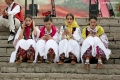 Youngesters of folk ensembles in traditional clothes in the Gjirokastra Castle before the start of the Folklore Festival of Gjirokastra. The festival will be held for 8 nights in the castle, on a stage open to all.