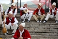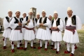 Singers of folk ensembles in traditional clothes in the Gjirokastra Castle before the start of the Folklore Festival of Gjirokastra. The festival will be held for 8 nights in the castle, on a stage open to all.