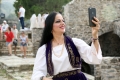 Artist of the folk ensembles in traditional clothes in the Gjirokastra Castle before the start of the Folklore Festival of Gjirokastra. The festival will be held for 8 nights in the castle, on a stage open to all.