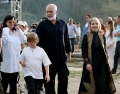 The Minister of Culture, Elva Margariti, the Prime Minister Edi Rama and his son, Zaho in the Gjirokastra Castle during the Gjirokastra Folk Festival. The festival will be held for 8 nights in the castle, on a stage open to all.