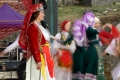 Singers and dancers of folklore ensembles, dressed in traditional costumes, performing in the Gjirokastra Castle during the Gjirokastra Folk Festival. The festival will be held for 8 nights in the castle, on a stage open to all.