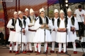 Singers of folklore ensembles performing in the Gjirokastra Castle during the Gjirokastra Folk Festival. The festival will be held for 8 nights in the castle, on a stage open to all.