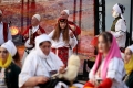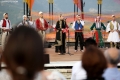 The mayor of Gjirokastre, Flamur Golemi, and singers of folk ensembles singing in the Gjirokastra Castle during the Gjirokastra Folk Festival. The festival will be held for 8 nights in the castle, on a stage open to all.