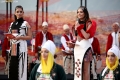 Dancers of folklore ensembles performing in the Gjirokastra Castle during the Gjirokastra Folk Festival. The festival will be held for 8 nights in the castle, on a stage open to all.