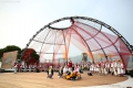 The Minister of Culture, Elva Margariti, the Prime Minister Edi Rama, his wife and son, Linda and Zaho in the Gjirokastra Castle during the Gjirokastra Folk Festival. The festival will be held for 8 nights in the castle, on a stage open to all.