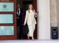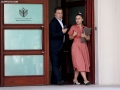 Minister of Defense, Niko Peleshi and Minister of State for Enterprise Protection, Edona Bilali leaving the Prime Minister's Office, after a government meeting, as they spoke about the approved decisions