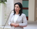 The Minister of Health and Social Protection, Ogerta Manastirliu speaking in front of the Prime Minister's office, after a government meeting, regarding the approved decisions