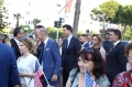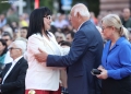 The prime minister's wife, Linda Rama, and the former president, Alfred Moisiu during the ceremony organized on Deshmoret e Kombit boulevard, in front of the Prime Minister's office on the occasion of Bill Clinton's first visit to Tirana. Clinton received the Star of Appreciation for Public Achievements award, while giving a speech about the achievements of the Albanian state and commented on the situation in northern Kosovo.