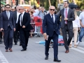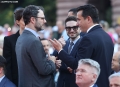 MP Lulzim Basha and Enkelejd Alibeaj during the ceremony organized on Deshmoret e Kombit boulevard, in front of the Prime Minister's office on the occasion of Bill Clinton's first visit to Tirana. Clinton received the Star of Appreciation for Public Achievements award, while giving a speech about the achievements of the Albanian state and commented on the situation in northern Kosovo.