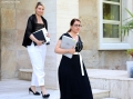 The Minister of Health and Social Protection, Ogerta Manastirliu and Minister of Culture, Elva Margariti leaving the Prime Minister's office after a government meeting, regarding the approved decisions