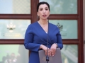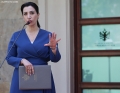 MINISTERS SPEAKING AFTER A MEETING - The Minister of Education and Sports, Evis Kushi speaking in front of the Prime Minister's office, after a government meeting, regarding the approved decisions