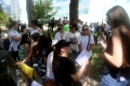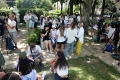 MEDICAL STUDENTS PROTEST IN FRONT OF THE PARLIAMENT - Students of the Faculty of Medicine standing in front of the parliament during a session, in protest against the draft law for forced employment for 5 years after completing their studies.