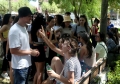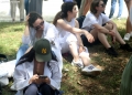 Students of the Faculty of Medicine standing in front of the parliament during a session, in protest against the draft law for forced employment for 5 years after completing their studies.