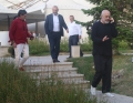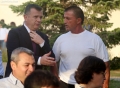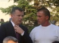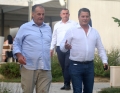 The mayor of Lezhes, Pjerin Ndreu and MP Xhemal Qefalia exiting a meeting of the Assembly of the Socialist Party, during which the result of the local elections of May 14 was discussed. During the meeting, some changes were made in the structure of the SP, where Damian Gjiknuri was dismissed from his position as General Secretary of the SP, to be replaced by Blendi Klosi, while the former minister of the interior, Bledar Cuci, was appointed as the head of the parliamentary group SP.