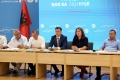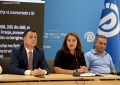 MP Flamur Noka and the former candidate of the coalition Bashke Fitojme in Prrenja, Suzana Topi speaking during a press conference, where they presented a part of the PD report on the thefts and abuses of the government and the socialist party during the May 14 elections.