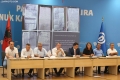 The heads of local branches and the candidates of the municipalities of Belsh, Peqin, Cerrik, Librazhd and Gramsh, MP Flamur Noka and the former candidate of the coalition Bashke Fitojme in Prrenjas, Suzana Topi speaking during a press conference, where they presented a part of the PD report on the thefts and abuses of the government and the socialist party during the May 14 elections.