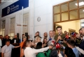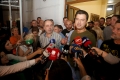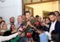 Gjergji Hani, Enkelejd Alibeaj, Lulzim Basha speaking for journalists after his victory in the elections of July 29 in front of the new headquarters of the democratic party. After winning the race against the candidate Gjergji Hani, Basha said that he will try to unite the party and seek his own in politics.