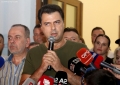 Enkelejd Alibeaj after Bashe's victory in the July 29 elections in front of the new headquarters of the democratic party. After winning the race against the candidate Gjergji Hani, Basha said that he will try to unite the party and seek his own in politics.